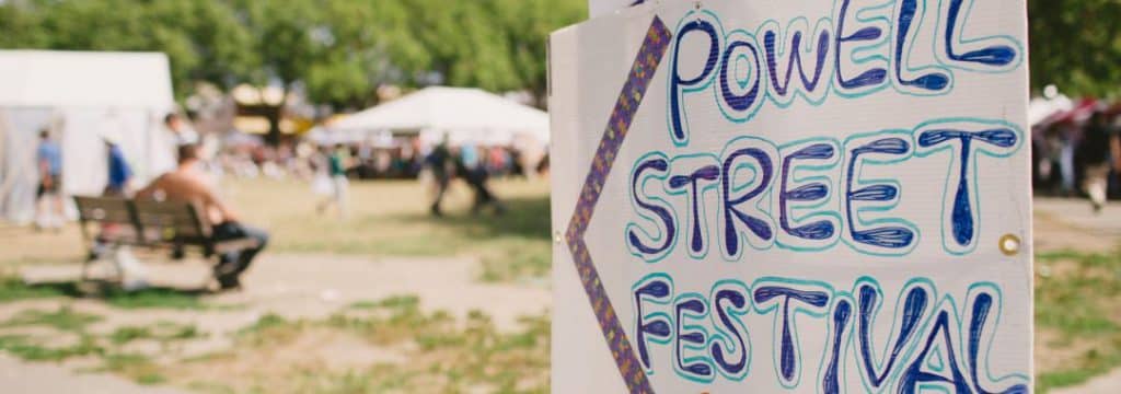 The Powell Street Festival, which began in 1977 to honour the early Japanese settlers and reinvigorate the Japanese Canadian community, takes place every BC Day long weekend in the historic Japanese neighbourhood, Paueru Gai (Powell Street), in Vancouver’s Downtown Eastside. Through traditional and contemporary music, dance, traditional practices, interdisciplinary arts and cultural activities, the festival provides an accessible, diverse, innovative, and challenging Japanese Canadian voice.