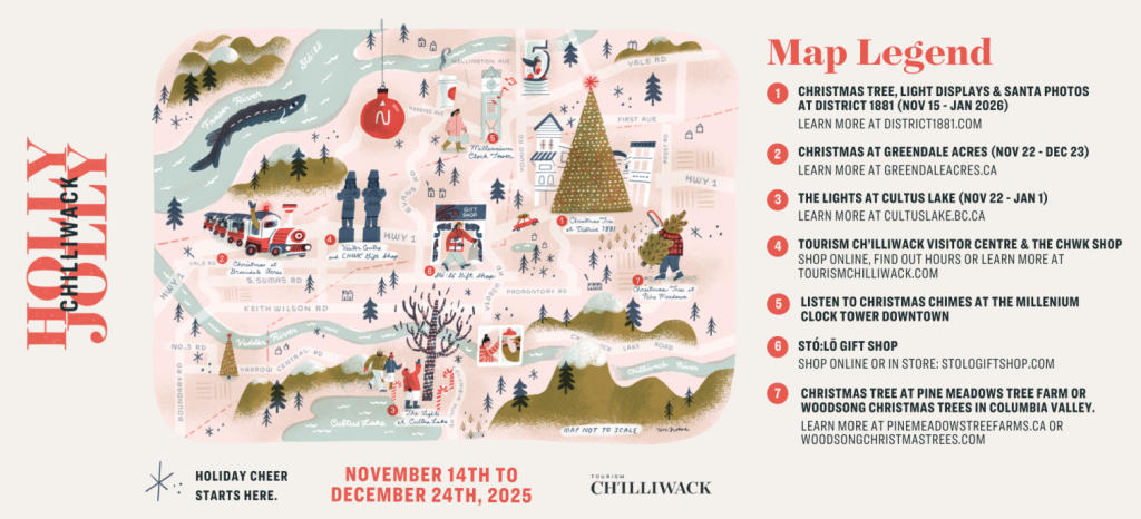 Step into a storybook setting at Holly Jolly Chilliwack! This charming celebration transforms Chilliwack into a winter wonderland filled with twinkling lights, festive markets, and holiday magic. Stroll through decorated streets, sip warm drinks at local cafés, and discover heartwarming moments around every corner.