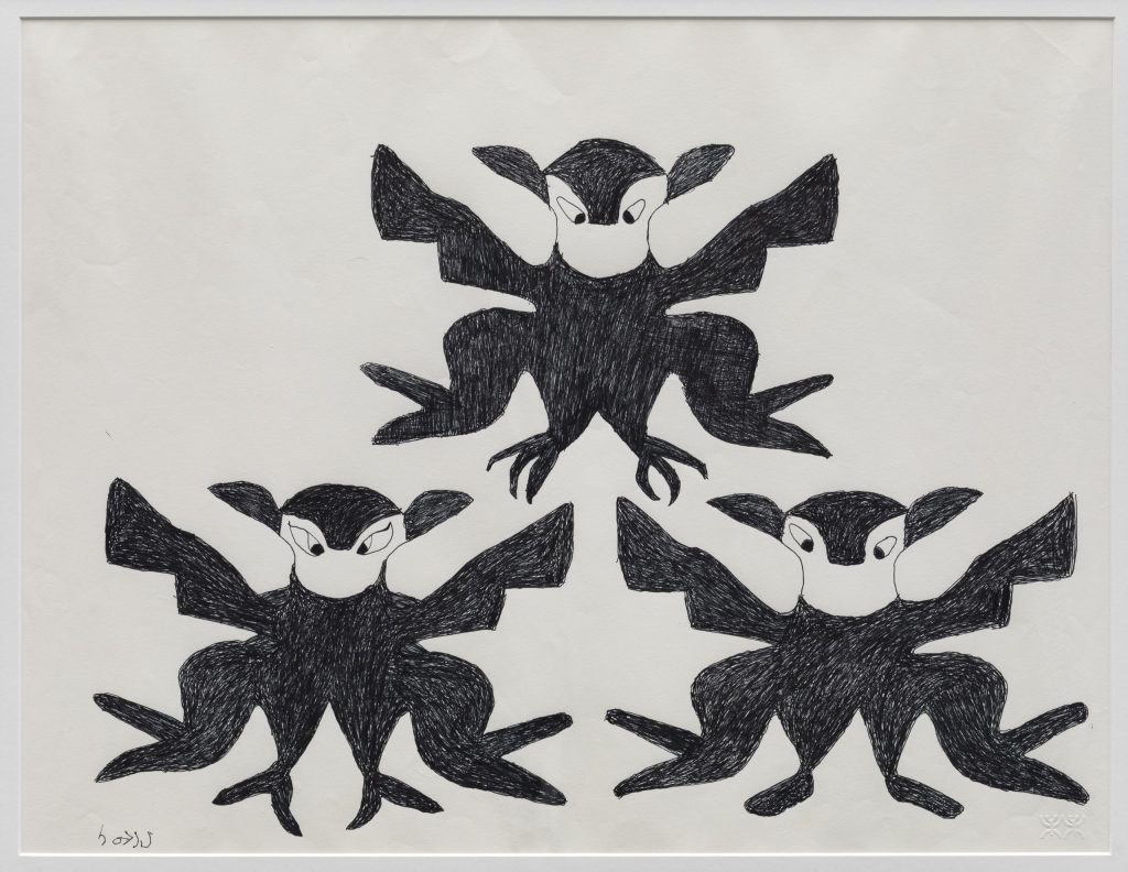 On tour from the Kelowna Art Gallery, this exhibition celebrates the life and work of Sharni Pootoogook (1922-2003), whose bold and balanced ink-on-paper drawings blur the boundaries between human and animal, spiritual and visceral. Pootoogook’s work draws clear connections between first-generation artists in Kinngait and the current trends in Inuit graphic art.