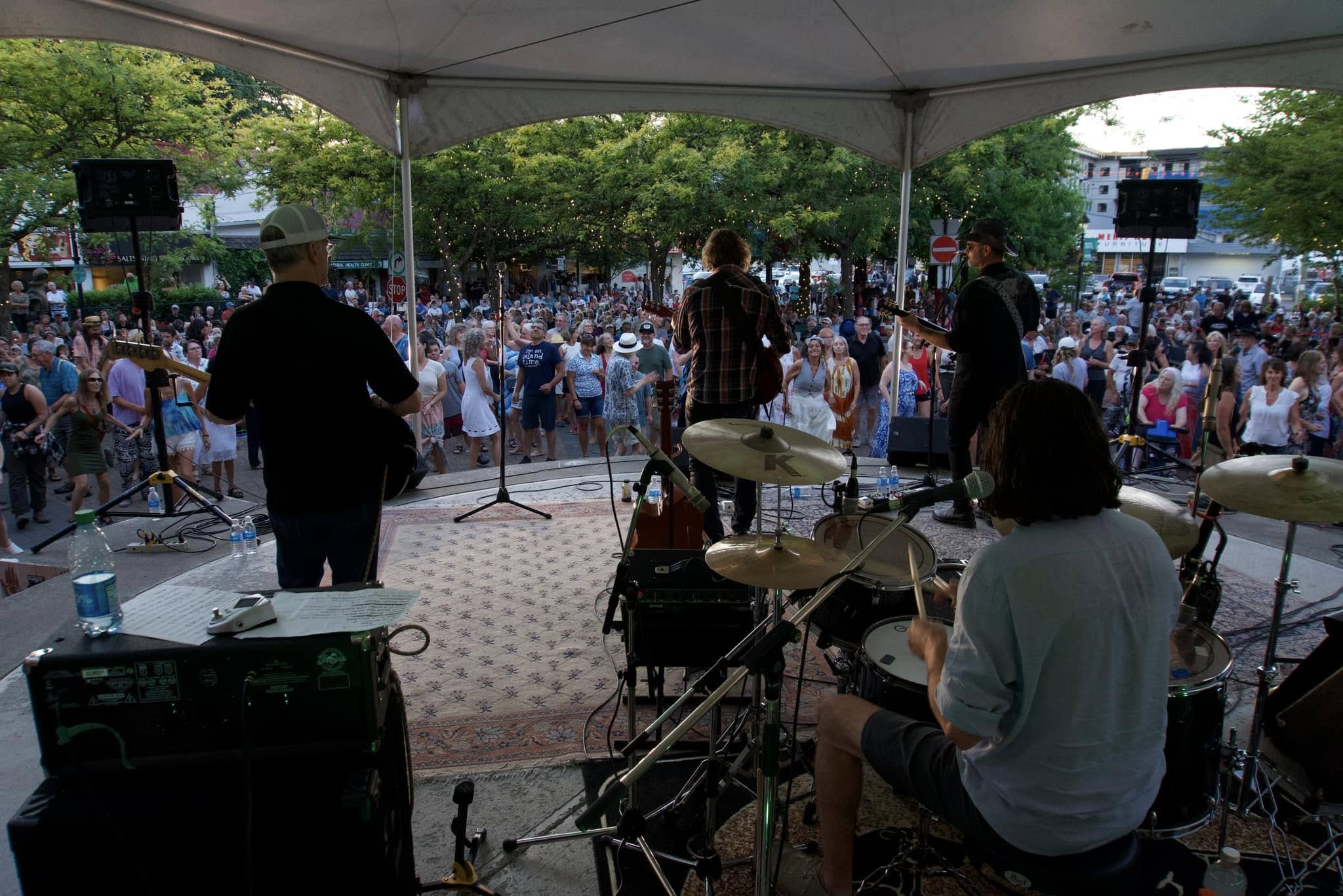 I was able to fill up the City Square Stage schedule rather quickly this year, actually had to cancel two shows due to the workload burnout that can happen when doing 356 shows in 39 days ( only 38 shows in 33 days in city square). So many concerts that might have been in the square ended up on the VITALS Stage in Charles Hoey Memorial Park (aka: train station park / across from the Duncan Garage Cafe ) Yes, the Steadies are back this year and they will be in the park, where you can dance on the grass instead of pavement. As a matter of fact, there are many other acts on the VITALS Stage this year that will also request such audience participation.