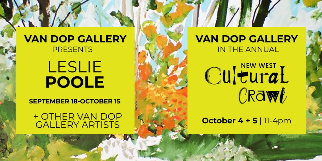 As part of the New West Cultural Crawl, Van Dop Gallery is proud to feature the imaginative work of celebrated painter Leslie Poole. Known for his surreal and thought-provoking style, Poole’s paintings invite viewers into richly layered worlds that spark both wonder and reflection. This exhibition offers a rare opportunity to experience his distinctive vision within the intimate setting of New Westminster’s landmark gallery.