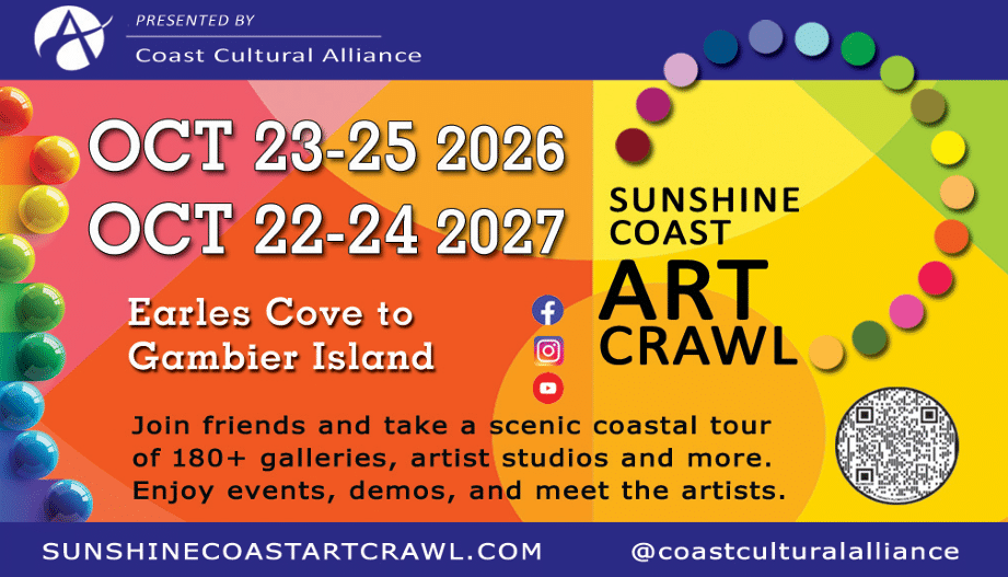 “Did you Know” the Sunshine Coast Art Crawl’” was listed as one of the TOP 20 Autumn Festivals and Events in North America by Wanderlust Magazine? Check it out here.