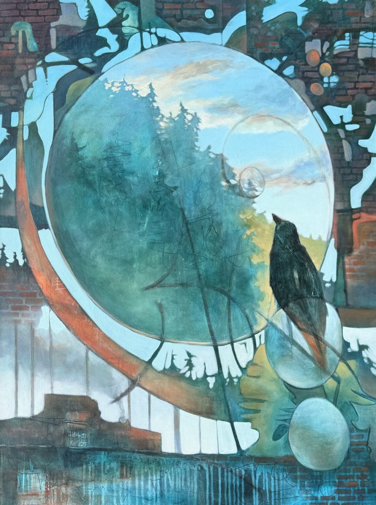 Recently, she has been pushing her boundaries, drawing on skills honed over the years to explore a more intuitive, semi-abstract style. Out of this new direction, the raven has appeared—an unexpected yet powerful presence.