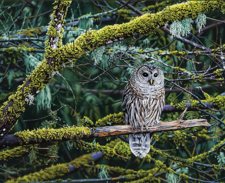 Primarily self-taught, Heather began painting birds in gouache in her early twenties after taking some post-secondary art courses. She later discovered the versatility of acrylic paint and began painting with acrylic on hardboard. This quickly became her favorite medium. She has worked with acrylic for over 30 years, while trying other mediums. Heather has also completed artwork featuring subjects other than wildlife. Among these are two major aviation paintings.